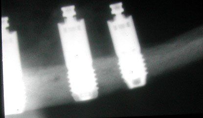 In questi pazienti furono inseriti 74 impianti di diametro ridotto, ovvero 3.5 mm. L’impiego di questi impianti ci obbligò ad accettare l’esposizione di alcune spire dell’impianto, decisione che si rivelò priva di conseguenze come già segnalato da Lekholm nel 1996. (2)